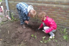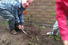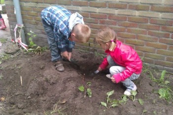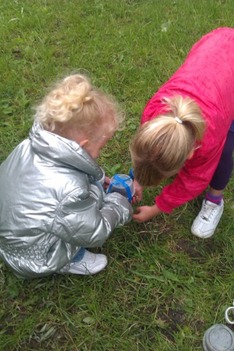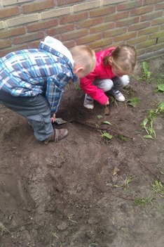 De dode wormen worden vandaag begraven door Fabian en Milou. Syenna en Tessa maken huisjes voor levende wormen.