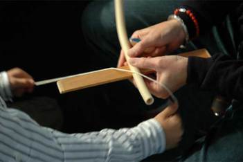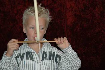 Koen is een echte uitvinder. Hij onderzoekt een stuk op de mogelijkheden er geluid mee te maken en ontdekt daarmee een nieuwe 'mondharmonica'. Dit blijkt het begin te zijn van een hele serie muziekinstrumenten die door meerdere kinderen gemaakt worden. De dag daarna maakt hij een soort contrabas van een tak die hij gevonden heeft, een snaar die hij spant van touw en een schoenendoos.
