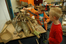 Het takkenteam Joey, Tom en Sam overleggen met elkaar hoe ze hun takkenstad gaan inrichten. Tom: "Joey kan dit stoeltje weg?" Ze gooien alles eruit wat ze niet nodig vinden. Zo worden de tekeningen die Tom gemaakt heeft met kleikrijt goed zichtbaar doordat ze het nog een keer schilderen met verf.