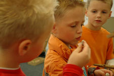 Joey: "Tom, je had wel even moeten overleggen over de kleitekeningen". Tom: "Maar jullie hebben ook zomaar de kleipoppetjes geschilderd zonder het mij te vragen!"