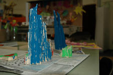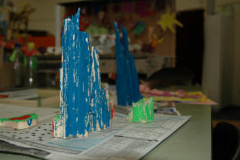 Amber: Van de houtstukken maken we een gekleurde boomstam-stad!