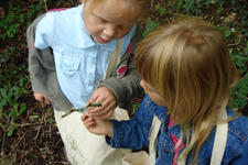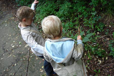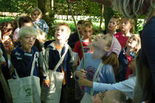 De kinderen kregen allemaal hun speciale project-tas om, waar we op de terugweg spulletjes in verzamelden. Takjes, bladeren, en ook hele grote takken werden mee teruggesleept naar de klas.