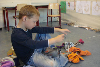 De kinderen gingen hier op in. En vooral Thijs die voor de eerste dag op school was. Hij was het meest enthousiast van de hele groep door meteen te gaan knopen.