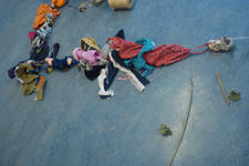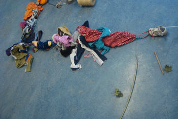 Wat gaat er gebeuren als we bij binnenkomst in het atelier gelijk al de aandacht vestigen op de aan elkaar geknoopte kleertjes?