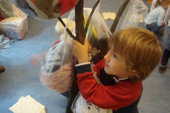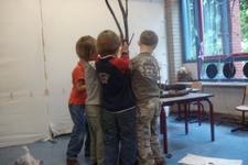 Tijdens de pauze gebeurde er iets: de boom viel om. We hebben hem vervolgens laten liggen, om te zien wat voor reactie dit bij de kinderen uitlokte.