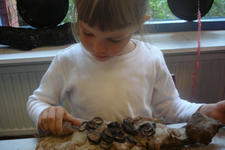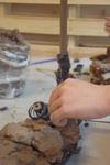 Ondertussen werkte Sasha aan de andere kant van het atelier alleen en geconcentreerd verder aan haar kleitaart.