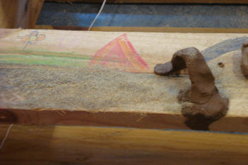 Benthe kwam er achter dat wanneer ze op haar tekening lijm en zand deed dat dit bleef plakken. Ze maakte zandfiguren. Later werden dit zandvloeren voor op de boot.