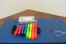 Van een gezamenlijke ordening is het niet gekomen; het uitproberen, onderzoeken van het aangeboden instrumentarium kan de komende week verder geëxploreerd worden. Daarnaast zullen we meer - zes - matten/plekken met instrumenten aanbieden!