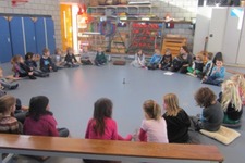 De kinderen komen vol verwachting binnen, Debby zit al in de kring te spelen.