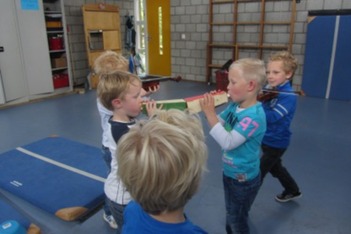 De kinderen leken er helemaal niet echt in te komen, ten minste niet op dezelfde natuurlijke manier als dat in het muziekatelier gaat. Het leek ook alsof ze de context van het muziekmaken misten. Het muziekatelier, onze gebruikelijke ruimte, werkt uitnodigend en ook lijken de kinderen het hele ritueel eromheen nodig te hebben om er echt in te komen. Het was overigens niet zo dat er helemaal niets gebeurde, maar dat vanzelfsprekende muziekmaken dat we in het muziekatelier heel sterk ervaren was er niet.