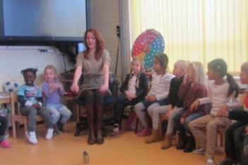 Iris: "Deze mag vanaf vandaag iedere dag met iemand mee naar huis. Juf Iet hangt een lijstje op, waar hij is en wie er aan de beurt is. Maar waarom gaat deze mee naar huis? Wat heb ik jullie gevraagd de laatste 2 keer?"