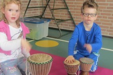 Aan de kinderen wordt gevraagd om na aanleiding van het onderwerp waar ze mee bezig zijn, muziek te maken.