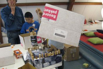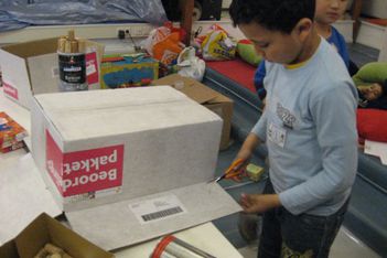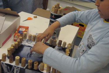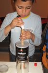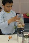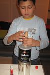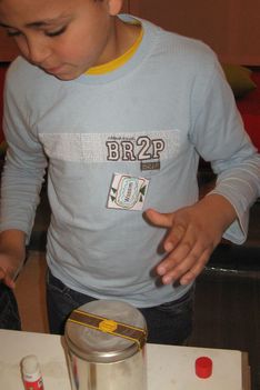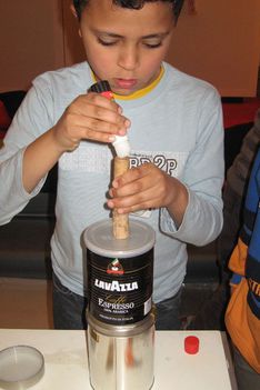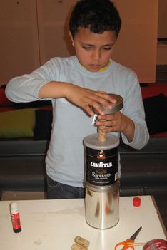 Wassim werkt keihard. Hij begint met een paar blikken, kurken, Pritt en stevig tape.Vanuit een toren ontstaat een geweer. Waar vervolgens vele kurken op worden bevestigd die als kogels dienen. Hij schiet er op los!