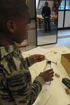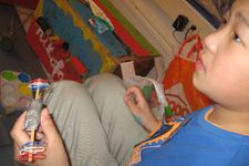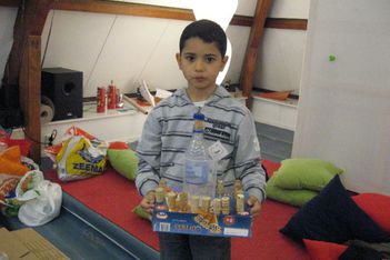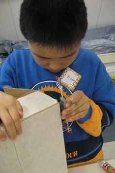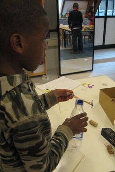 De mooiste vliegtuigen worden gemaakt in het atelier. Een goede zet is het grijze, stevige plakband, zodat de verschillende materialen nog beter bevestigd kunnen worden.