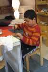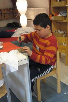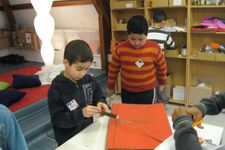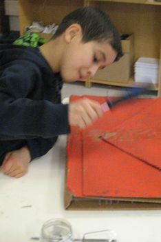 Mouhsinne, Ouassim en Enes hebben tussen het kosteloos materiaal een soort grote envelop gevonden. Ze hebben een kant van de envelop rood geschilderd. Nadat deze was geverfd zijn ze geheime brieven gaan schrijven. In de tussentijd kon de envelop drogen.