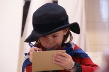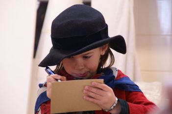 De meeste kinderen kunnen natuurlijk nog niet schrijven, maar doen alsof met tekens en golfjes. Sommige kinderen schreven letters op die ze kenden. De postzegels krijgen de mooiste vormen soms met naam. Ook bedacht Ella dat er om de postzegel altijd karteltjes zaten.