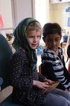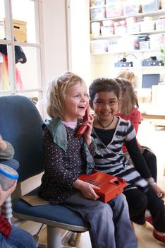 Hoe zien postzegels er eigenlijk uit? En wat doen die cijfers op de postzegels. We gingen postzegels bekijken. Romy die al een beetje kan lezen leest 44 cent, dus nu weten ze wat de 44 betekent. Je moet er dus voor betalen, maar waarom? We hadden erg veel lol om het rolletje postzegels, die steeds verder uitgerold werd. Josse riep "Tjee, dat is veel geld!" Elke postzegel is 44 cent waard en we zagen heel veel postzegels!