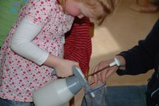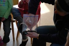 Vanmiddag hebben we 4 zakjes met aarde gevuld. Hierin gingen per zakje 3 zaadjes van een zonnebloem. Een beetje water erbij, dicht maken, en nu hangen ze in de zon op het raam geplakt.We gaan onderzoeken wat er gaat gebeuren. Daardoor hebben we het gelijk over "Wat is een onderzoek?"