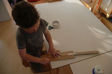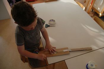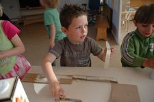 Met veel precisie werd er door de kinderen aan hun geluidsinstrument gewerkt. De een was geïnteresseerd in hoe het geluid was en een ander weer in de versiering van het geluidinstrument en hoe dat beweegt als je het instrument heen en weer laat gaan.Geluiden hebben zo'n invloed op kinderen dat er een soort natuurlijk gevoel boven komt, dat wil dat de geluiden hard zijn en dat je kan bewegen. Daarna kan er pas rust gevonden worden. Je merkte ook dat Zakaria, die gisteren ziek was, heel veel lawaai wilde maken. De andere kinderen konden langer zonder geluid te maken met hun instrument bezig zijn.Vooral veel jongens gaan een onuitgesproken confrontatie met elkaar aan van wie het hardste geluid kan produceren. Wesly vangt dat op door een heel hoge toren te maken. Ze willen op de een of andere manier hun kracht laten zien.Het bewegen bij de geluiden doen heel veel kinderen. Vooral als de djembe mee doet.Je merkt wel dat bij zoveel geluid de klas eigenlijk te klein is. Je hebt duidelijk behoefte aan een grotere ruimte. Gelukkig was het mooi weer en was het schoolplein leeg. De klas als ruimte werkte met het maken van de geluidsinstrumenten heel goed. Ieder kind kon een plekje vinden en de materialen.Als dit niet de laatste week zou zijn geweest waren we waarschijnlijk van geluiden en geluidsinstrumenten langzaam overgegaan naar bewegen. Maar helaas komt het einde in zicht. En we kunnen nog wel even door met de geluiden. Ook de geluiden met de mond en keel zijn inspirerend.