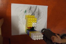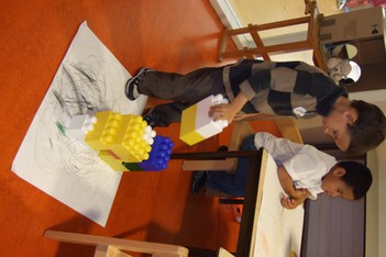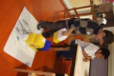 Johan: "Ik maak een weg waar de batterij op kan rollen." Johan legt zijn vel papier op de grond en wil daarop bouwen. Hij heeft de speelgoedblokken uit de klas gehaald en een kasteel gemaakt op de tekening, daarbij geholpen door Zakaria. De tekening van Zakaria kreeg vervolgens een plek in het gebouw. De tekening had een voor- en achterkant. Op de achterkant tekende Zakaria de zon in een grot.