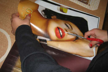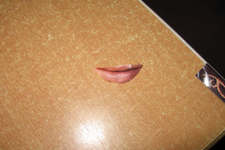 Madelon verft de uitgeknipte lippen nog een beetje roder.