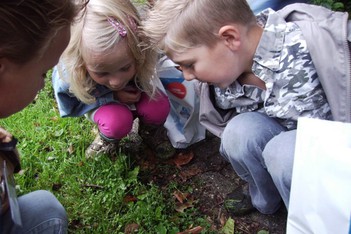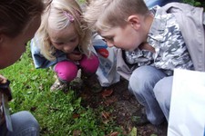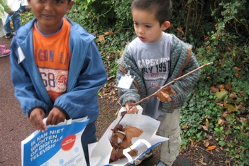 Het is geen kastanje, geen eikel maar wat dan wel? Ze kijken, en voelen voorzichtig.