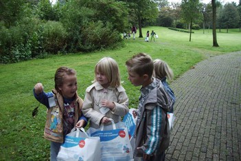 SVEN, MARIT, ANGELO en ....lijken meer door het park te slenteren dan dat er verzameld wordt.