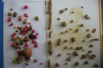 De kinderen werken voor het eerst met klei. Opvallend is hoe trefzeker de kinderen het karakter van hun verzameling weten te vertalen in dit nieuwe materiaal. Kijk naar de losheid van Tuba en Noah en het gesloten karakter van Charmaine.