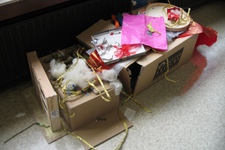 De begrippen verzamelen en tonen/ laten zien van de verzameling lopen steeds meer in elkaar over. De kinderen creƫren plekken gebruikmakend van al het materiaal dat ze kunnen vinden.