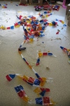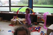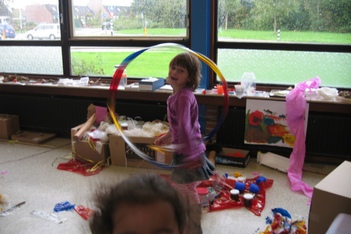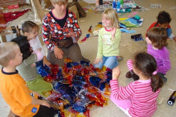 Aan het einde van deze ochtend roept Eva de kinderen bij zich en ze mogen de gekleurde folie aan haar geven.
