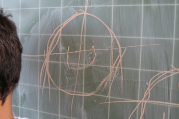 "Omdat het gevaarlijk is anders gaan de meisjes dood. De jongens zijn heel stoer." Noah tekent de vier meisjes op het schoolbord en streept hun gezichten vervolgens door.