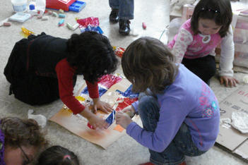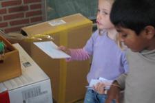 De meisjes maken uitnodigingen voor het feest en brengen die rond.