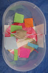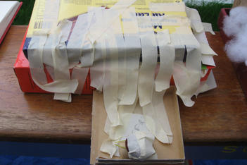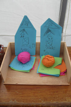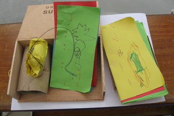 Elk kind heeft een kastanje gekregen en maakt daarvoor een bewaarplek. Dat wordt heel verschillend aangepakt. Een aantal werkt heel klein, met papier, kurk en lijm. Anderen gebruiken er weer klei bij. Het eindresultaat is heel divers.