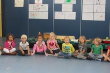 Het is heel interessant om te observeren wat er tijdens het vrije spel gebeurt. Zoals elke week zijn dat heel erg veel mini-projekten, maar vooral hoe de kinderen samenwerken en groepjes maken is interessant. Vaak voegen ze zich van tevoren bij een bepaalde groep, en gaan dan tijdens het vrije werken toch in een andere constellatie aan de slag. Vooral Emma en Bibi trokken helemaal hun eigen plan, zij voerden een muzikaal gesprek met elkaar en lieten zich door niets of niemand storen. Bij het voorspeel moment wilden de andere meisjes zich bij dit groepje voegen, omdat ze eerder hadden gezegd samen te willen werken. Het is heel interessant dat de kinderen op zo'n moment eigenlijk bereid zijn om alweer iets heel nieuws te doen, terwijl wij juist ruimte willen geven voor wat er daarvoor is gebeurt.