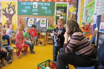 De kinderen zitten al in de kring als juf Debby binnenkomt. We zingen eerst het goededag lied, dan vraagt juf Debby: “Wat hebben we gedaan vorige week?”