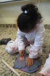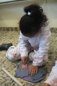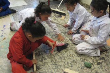 Zaagsel maken, dit in een koker doen en vervolgens aanbrengen op het kleiwerk
