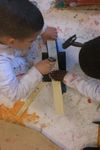Om de bekers 'groter' te maken spijkerde hij samen met Calvin (de Hamerman) nieuwe latten op de bekers.