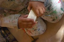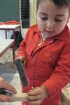 Oualid timmerde vandaag zijn eerste bouwwerk.
