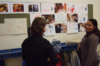 Na de inloop worden de gemaakte foto's geprint, opgehangen en weer bekeken en besproken