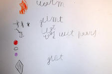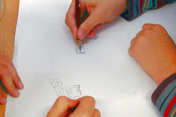 Het maken van een identiteitskaart voor de dingen vonden de kinderen heel moeilijk. Veel kinderen gingen de dingen gewoon tekenen. Ook al hadden we steeds een groep 4 leerling gekoppeld aan een groep 3 kind, het omschrijven van eigenschappen bleek een probleem.