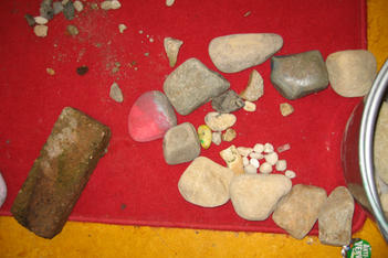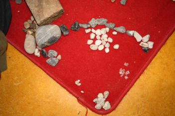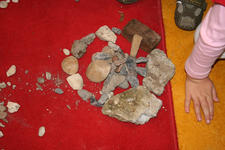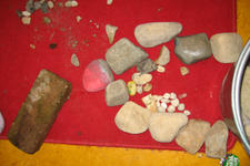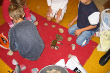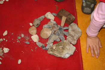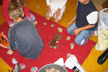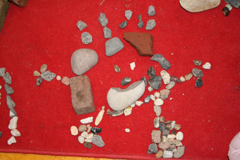 Sommige kinderen maakten een compositie waarbij ze stenen met dezelfde kleur of maat bij elkaar legden. Anderen maakten figuren.