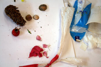 In de klas wordt alles op tafel gelegd. De kinderen willen hun vondsten voor zichzelf houden en geen gemeenschappelijke verzameling maken. Er wordt besloten om met de materialen iets te maken. Een gladde lampenkap wordt een bloem met allerlei gladde dingen eraan, gladde doosjes worden gevuld met nieuwe verzamelingen.