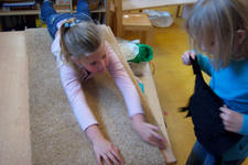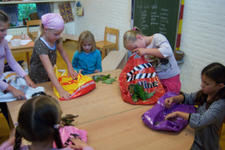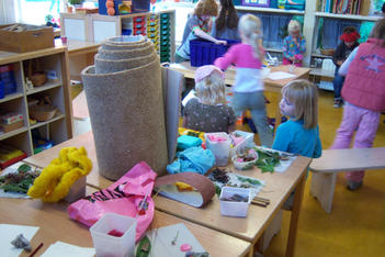 Buiten vonden Bibi, Isabel, Charley, Julia, Dalya en June allerlei zachte dingen: blaadjes, grasjes, veertjes, bloemen. In het atelier vonden ze weer hele andere soorten zacht: lapjes, wol én doosjes om zachte dingen in te bewaren.