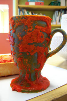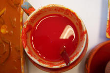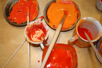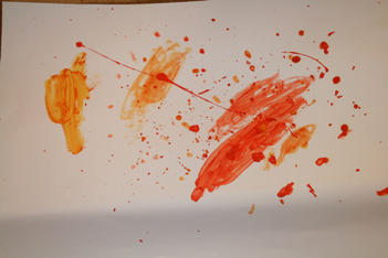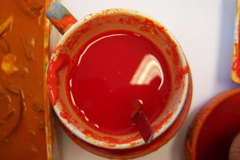 Rene wilde heel graag schilderen en ze is op een ander plekje verder gegaan met rode schilderijen. Hierbij ontdekte ze dat een prutje wat in eerste instantie heel fel rood leek op papier meer oranje werd en een ander prutje wat lichter leek was veel roder.