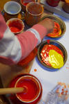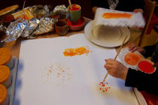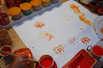 Casper ontdekte dat je kon afdrukken met verf. Hij probeerde 3 voorwerpen uit, maar verloor daarna zijn interesse.