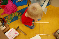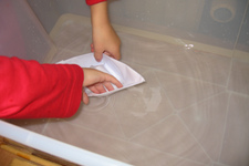 Kurk en hout drijft gemakkelijk. De papierenbootjes gaan stuk, denkt Liam. Samen proberen zij het uit. De papieren bootjes drijven ook prima, maar niet voor lang, ze worden nat en er komt water in. Ze scheuren gemakkelijk als je ze uit het water tilt. Ze proberen nog even of klei drijft. Nee, klei drijft niet.