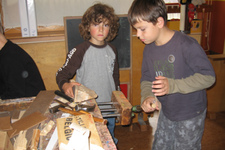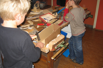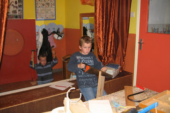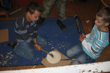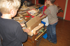 De jongens van het houtgroepje werken zelfstandig. Als de volwassene die ze begeleid ziek is in week 7 en 8, werken ze gewoon door aan hun geurproject, bagagewagen en onderzoeken naar aanleiding van wat er op hun hout-pad komt. SPW stagiaire Daniëlle moet alleen af en toe een zaagje vervangen of een boortje in de boortol vastmaken. Verder wordt er samen gewerkt; de één is goed in zagen, de ander in spijkers inslaan. Ook vragen ze naar elkaars mening.