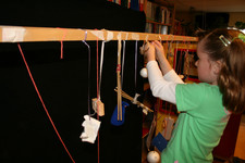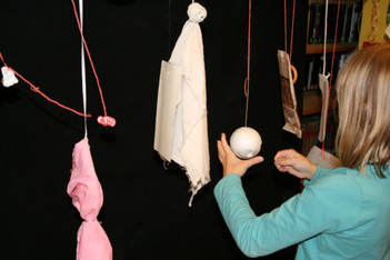 Laura:”De hond is langzaam. Hij heeft stippen. Die zie je niet goed als hij beweegt. Hij kan schommelen” “De dingen die niet zo zwaar zijn bewegen snel” “Papier ook” “Het behang en de voetbal zitten in de knoop” “Ze gaan vechten” “Het pluisje aan het lint slingerdraait” “Hout beweegt bijna helemaal niet” “het is te zwaar” “Het opgerolde lapje gaat heen en weer” “Het blauwe spookje kan kopje duikelen” “Het bootje van Charley draait niet”