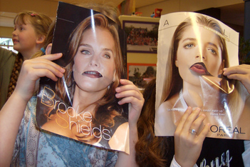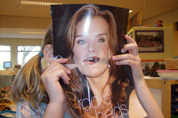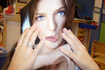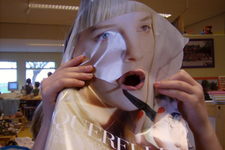 June en Madelon gingen verder met het lippenverhaal. Casper was er vandaag niet dus nam June zijn plek in. Madelon ging het verhaal nog een keertje goed vertellen en June ging nog wat lippen uit knippen. Ze hield het blad voor haar gezicht en Sanne maakte een foto. Het resultaat was zo grappig dat ze het bij iedere vrouw uit probeerde. Madelon kwam erbij en bij de foto voor haar gezicht gaf het weer een heel ander resultaat. Isabel en Dalya voegden zich ook bij dit groepje